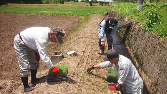 小西養鯉場の養殖池は、万代池を基水として運用されています。優雅に泳ぐ錦鯉が、美しく立派に育つべく惜しみなく与えられる小西養鯉場独自配合の餌。その成分を十分に含んだ溢れ水は、すべて小西米を構成する親水として用水路に割り入れ注ぎ込まれております。この小西米は、小西養鯉場経由の用水を有効活用できる極めて限られた認定圃場のみに与えられる称号の、唯一無二の希少を超越したハイエンドブランド米です。